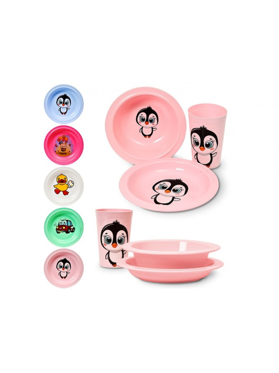 Набір дитячого посуду: тарілка кругла з декором+тарілка глибока з декором+стакан "Сонечко"