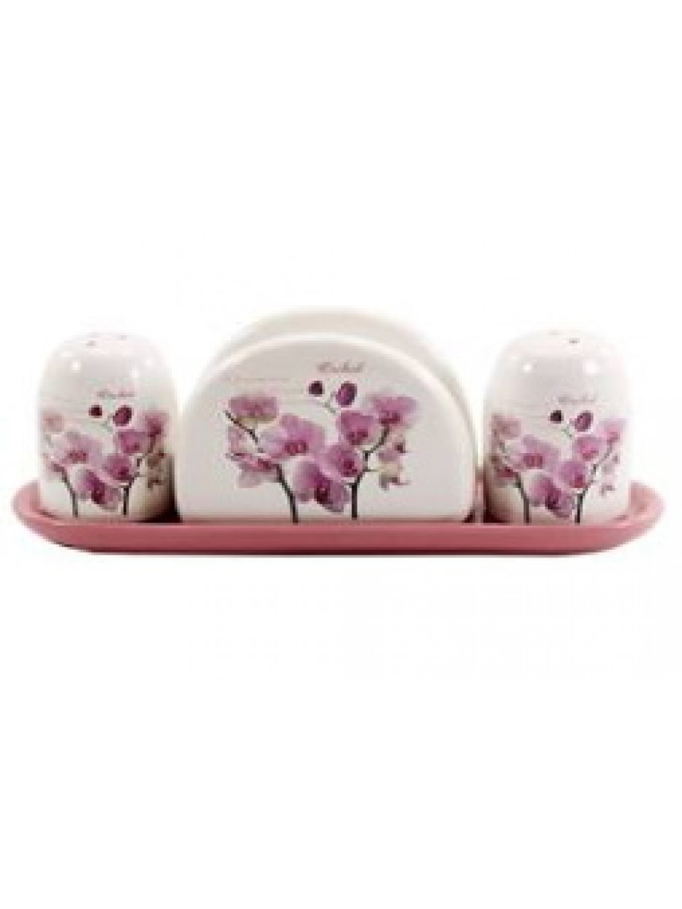 Набір для солі та перцю Interos "Орхідея" з серветницею, на підставці