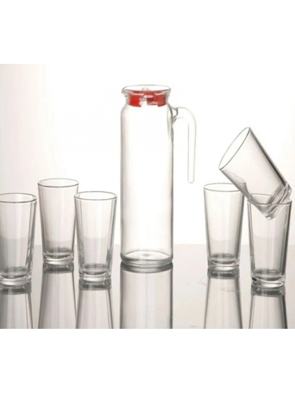 Набір глечик з кришкою Pasabahce Сара 1л+6шт склянок д/води v-200 мл (под.уп.)