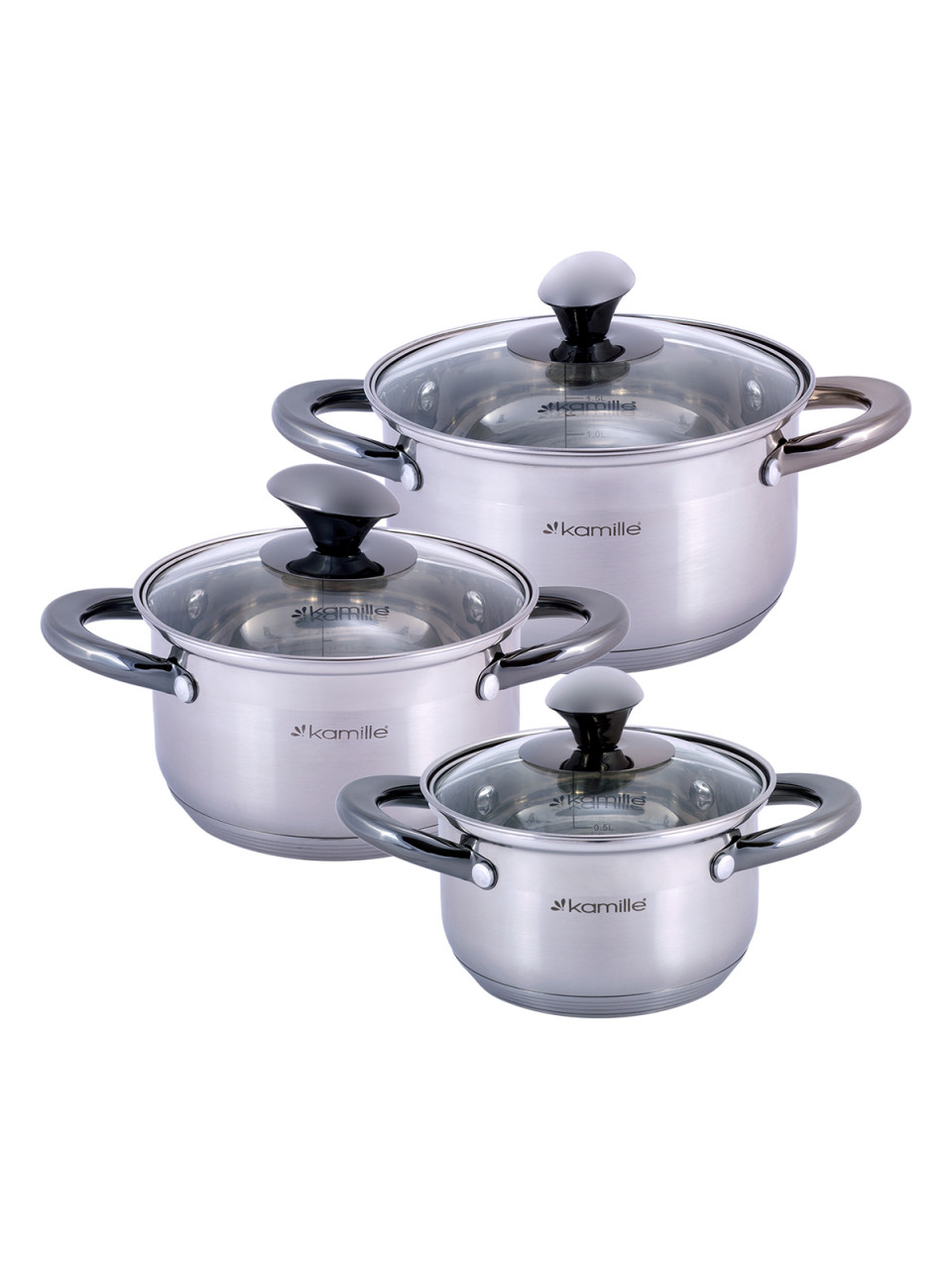 Набір каструль Kamille 6 пр. (каструлі: 1,0 л., 1,5 л., 2,0 л.) чорні тоновані ручки
