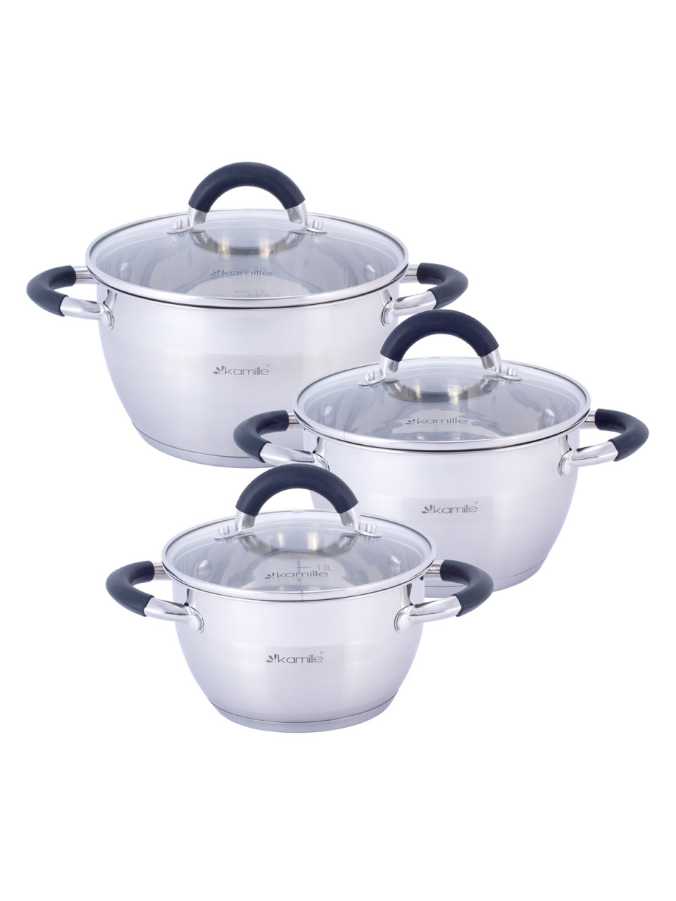 Набір каструль Kamille 6 пр. (каструлі: 1,8 л., 2,5 л., 3,5 л.) силіконові вставки
