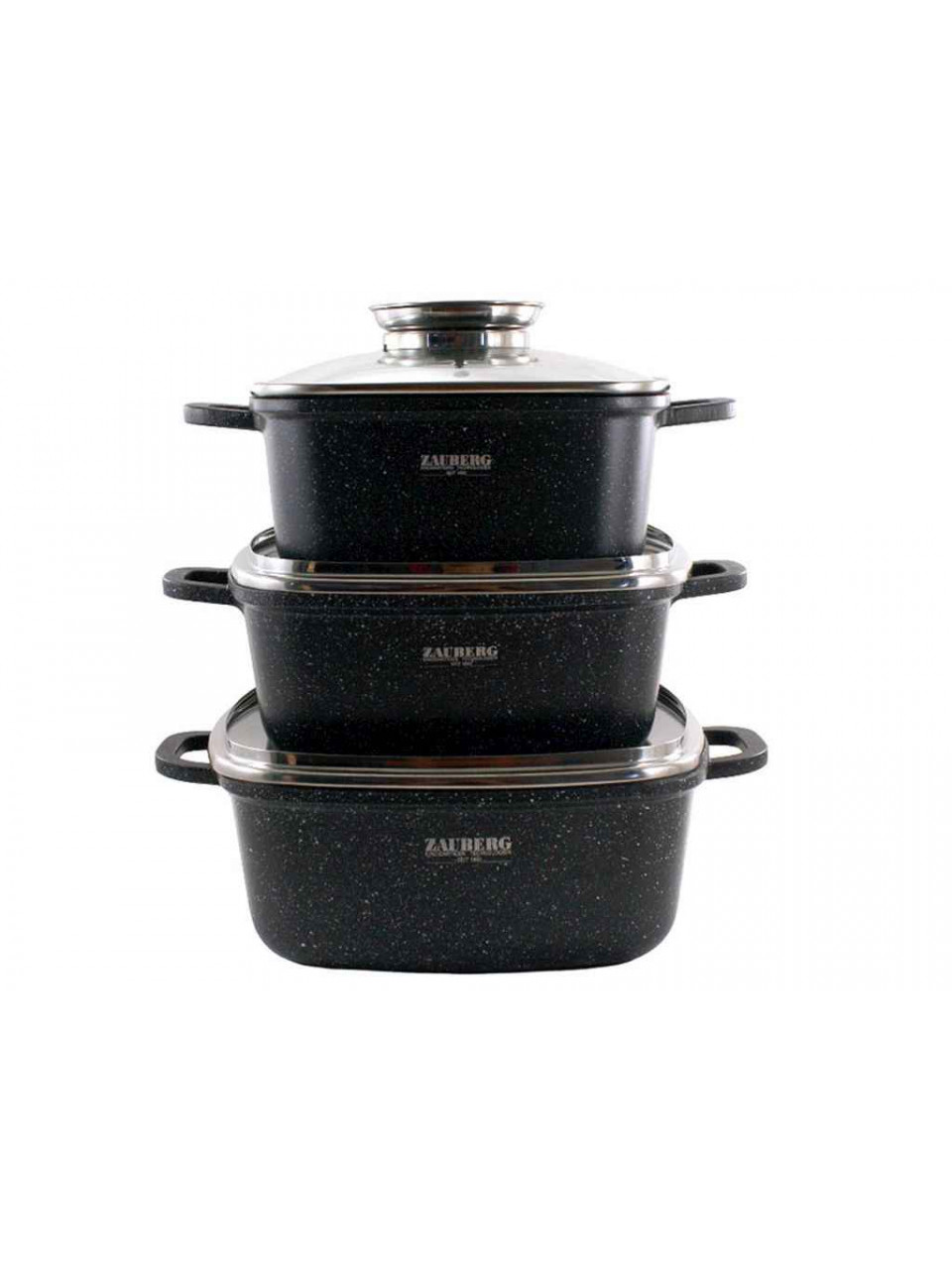Набір каструль квадратних Zauberg МАРМУР 2,7/3,5/4,4 л алюм. антипригарне покриття, із скл. кр. 3 пр