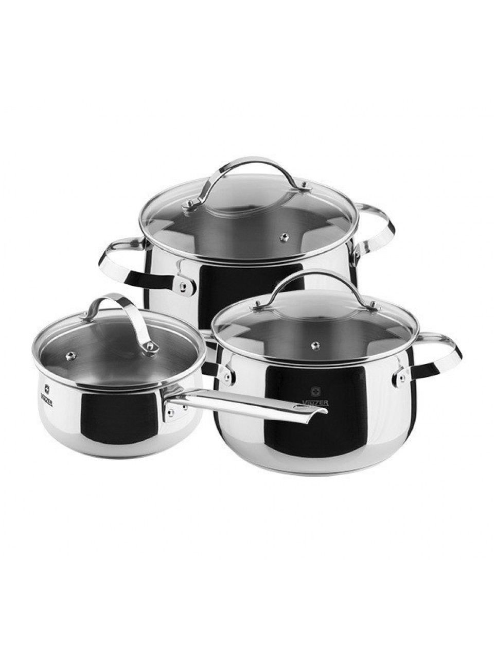 Набір каструль Vinzer Culinaire 6 пр. (каструлі: 2,4 л.,4,0 л., ківш 1,6 л.) глянцева поверхня