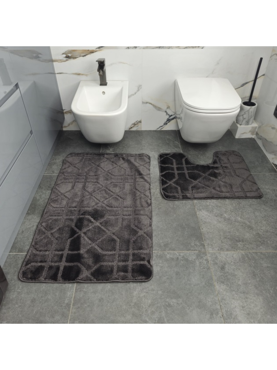 Набір килимків для ванних кімнат поліпропіленовий TM DarianA Standard 60*100+60*50 з вирізом сірий геометрія