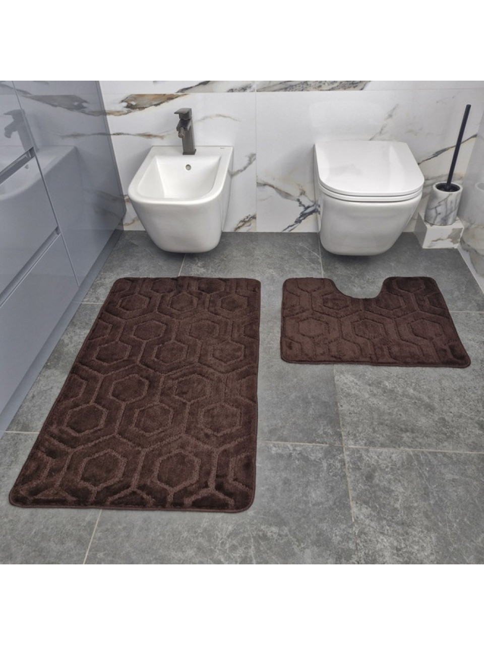 Набір килимків для ванних кімнат поліпропіленовий TM DarianA Standard 60*100+60*50 з вирізом шоколадний соти