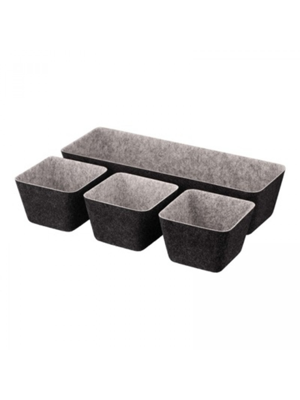 У наборі ARDESTO Prestigio є чотири контейнери, один розміром 38,5 × 13, 5 × 9 см, три інших –12 × 12 × 8,5 см, вони гармонійно поєднуються між собою, створюючи однорідний і охайний вигляд на поличці або в шухляді. Легкі та практичні контейнери виготовлено з міцного та довговічного фетру, що дає змогу зберігати їх форму та первинний вигляд навіть після тривалого використання. Сірий колір додає універсальності, а компактні розміри дають змогу зручно організувати простір у шафі, на полиці чи відкритій поверхні.