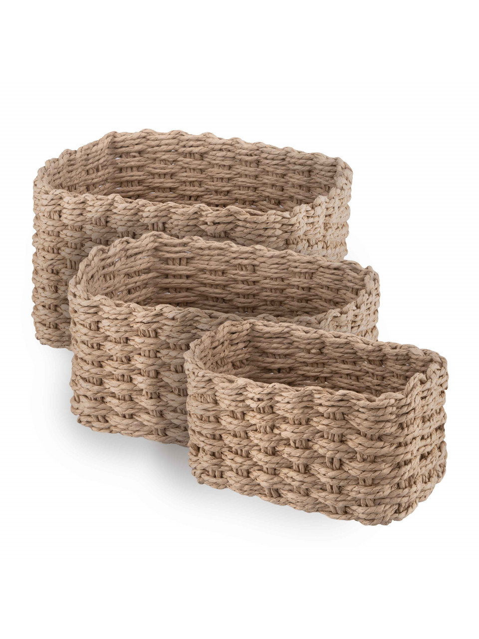 Набір кошиків плетених для зберігання Ardesto Prestigio (3.3/2.2/1.4л), 3 предмети, паперовий шпагат, бежевий