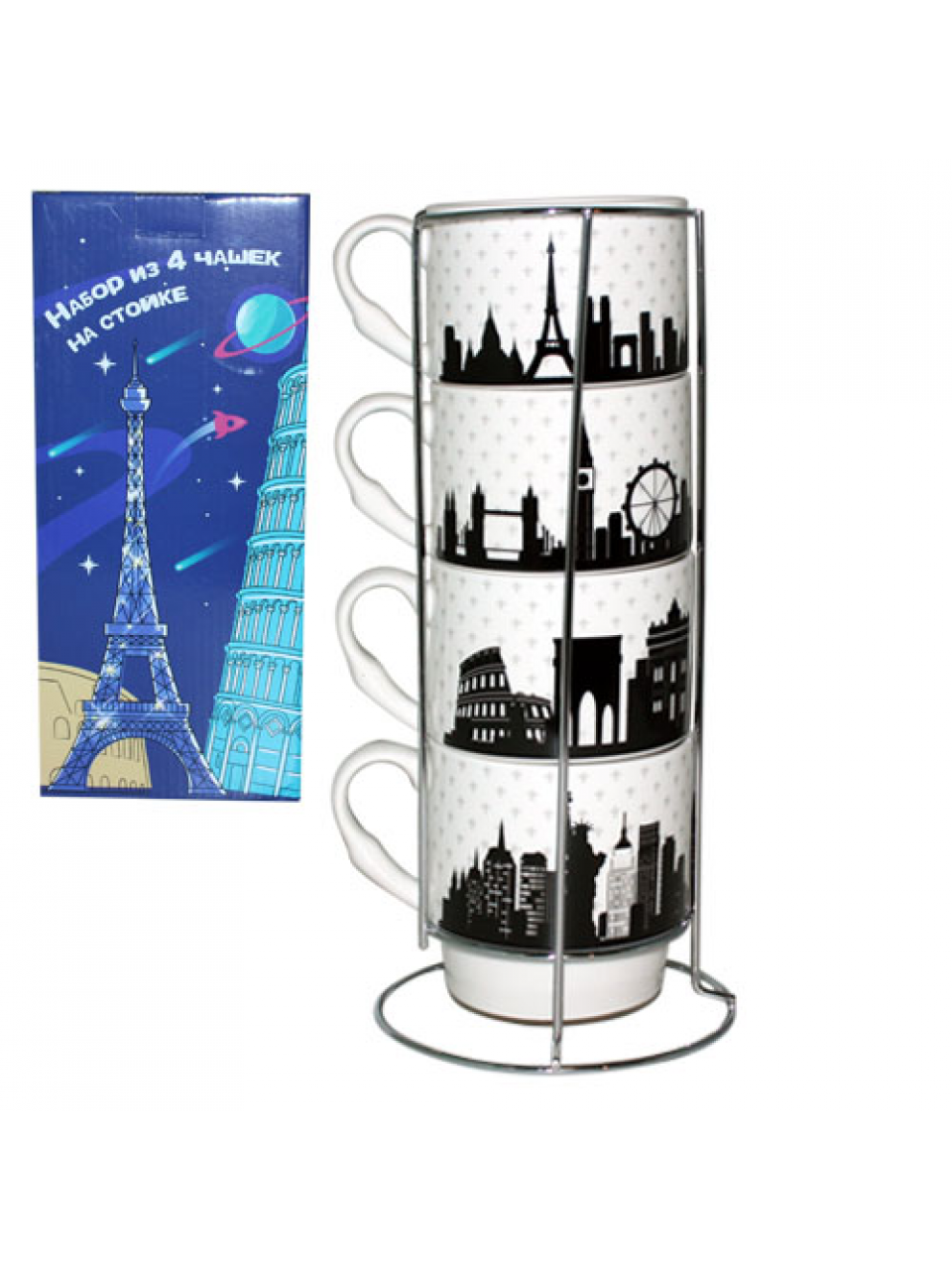 Набір кружок 4 шт. S&T "Towns" 320 мл., на стійці