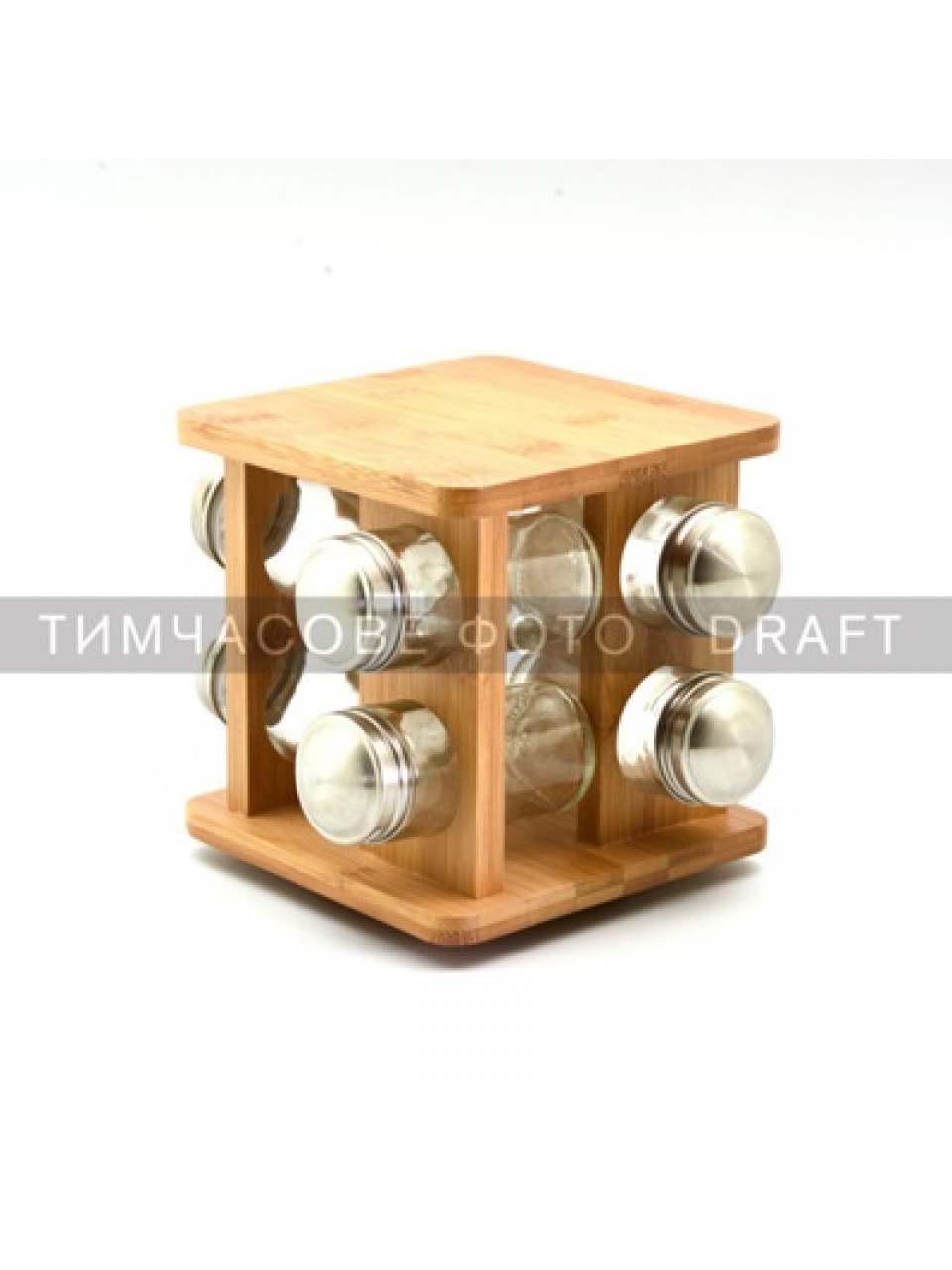 Набір ємностей для спецій на підставці Ardesto Midori, 9 предметів, 80мл, 19x19x15.5см, бамбук, нержавіюча сталь, скло, пластик