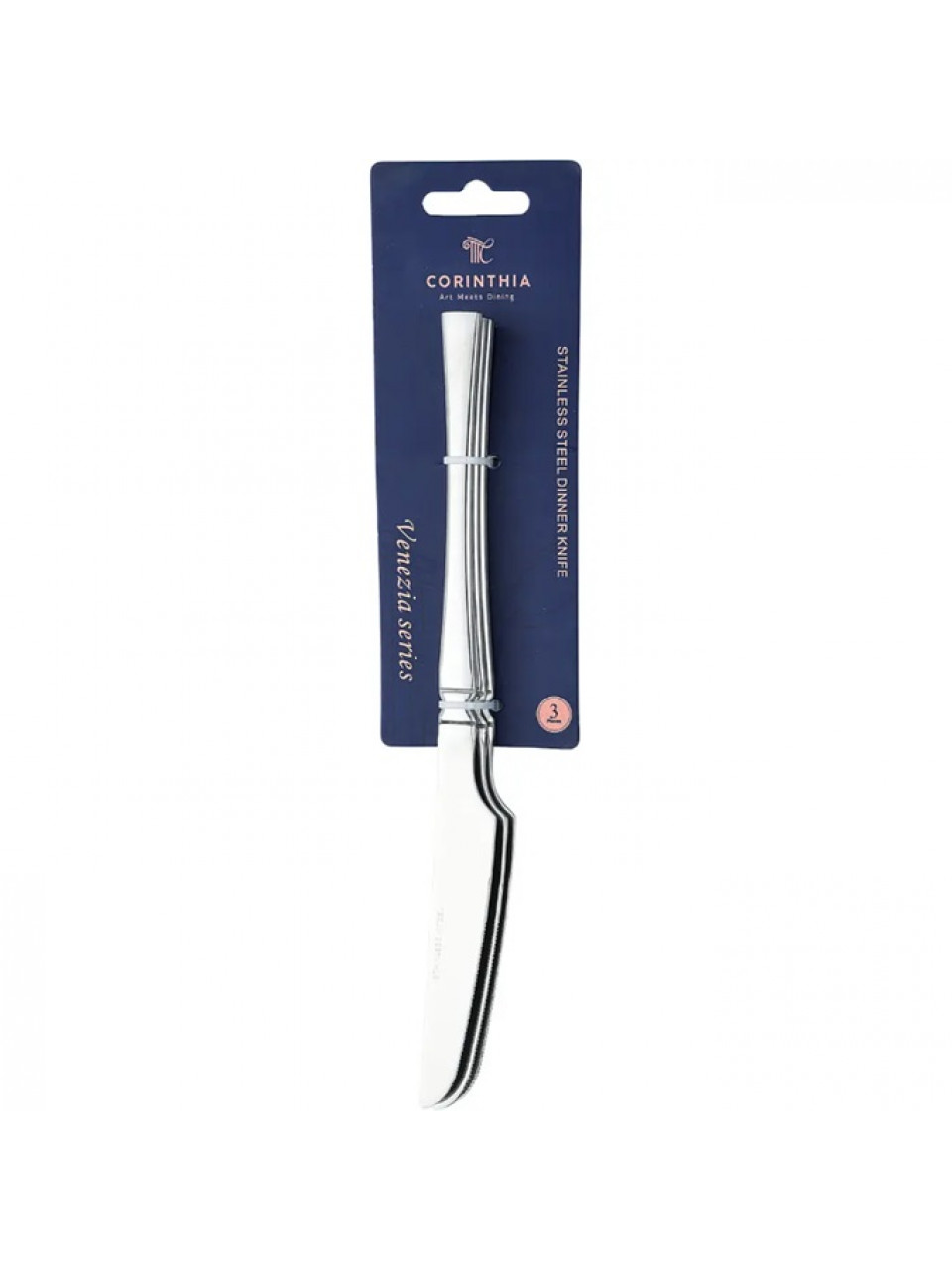 Набір столових ножів Venezia Corinthia поєднує практичність, довговічність і вишуканий класичний дизайн. Завдяки ергономічній формі та оптимальній вазі, прибори зручно лежать у руці, забезпечуючи комфорт і задоволення під час кожного приймання їжі.
