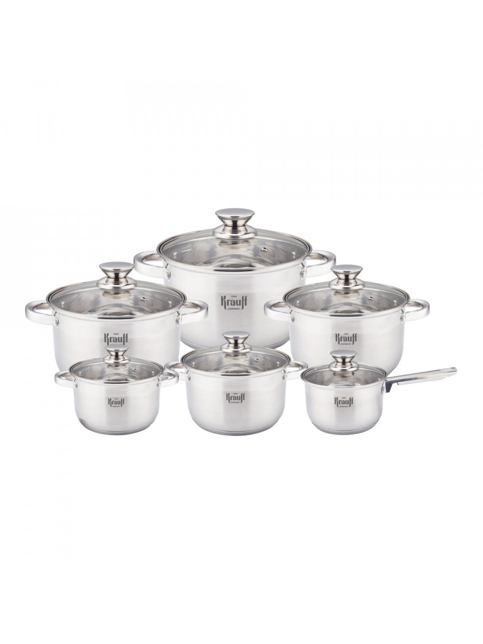 Набір посуду Krauf 12 предметів. (каструлі 1.7 /2,4/3,3/4.4/5.7 л ківш 1.4 л)