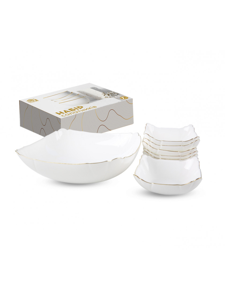 Набір салатників S&T золотий кант (1-1,5л ,6-200 мл) 7 шт,