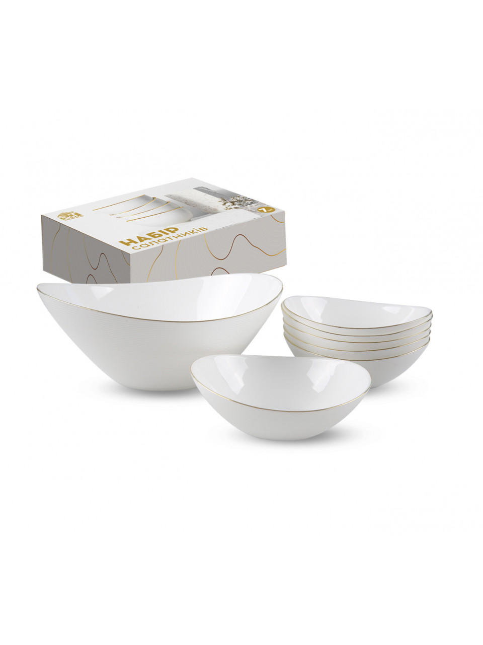 Набір салатників S&T золотий кант (1-1,8л, 6- 400 мл) 7 шт,