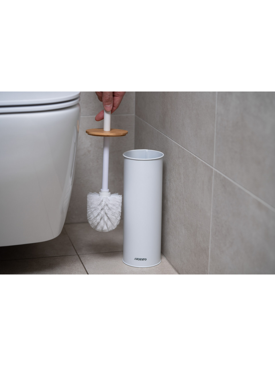 Набір щітка для унітазу з підставкою Ardesto Minimalism 9.5x27.5/38см, метал, поліпропілен, бамбук, білий