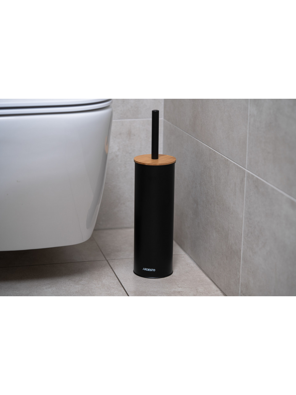 Набір щітка для унітазу з підставкою Ardesto Minimalism 9.5x27.5/38см, метал, поліпропілен, бамбук, чорний