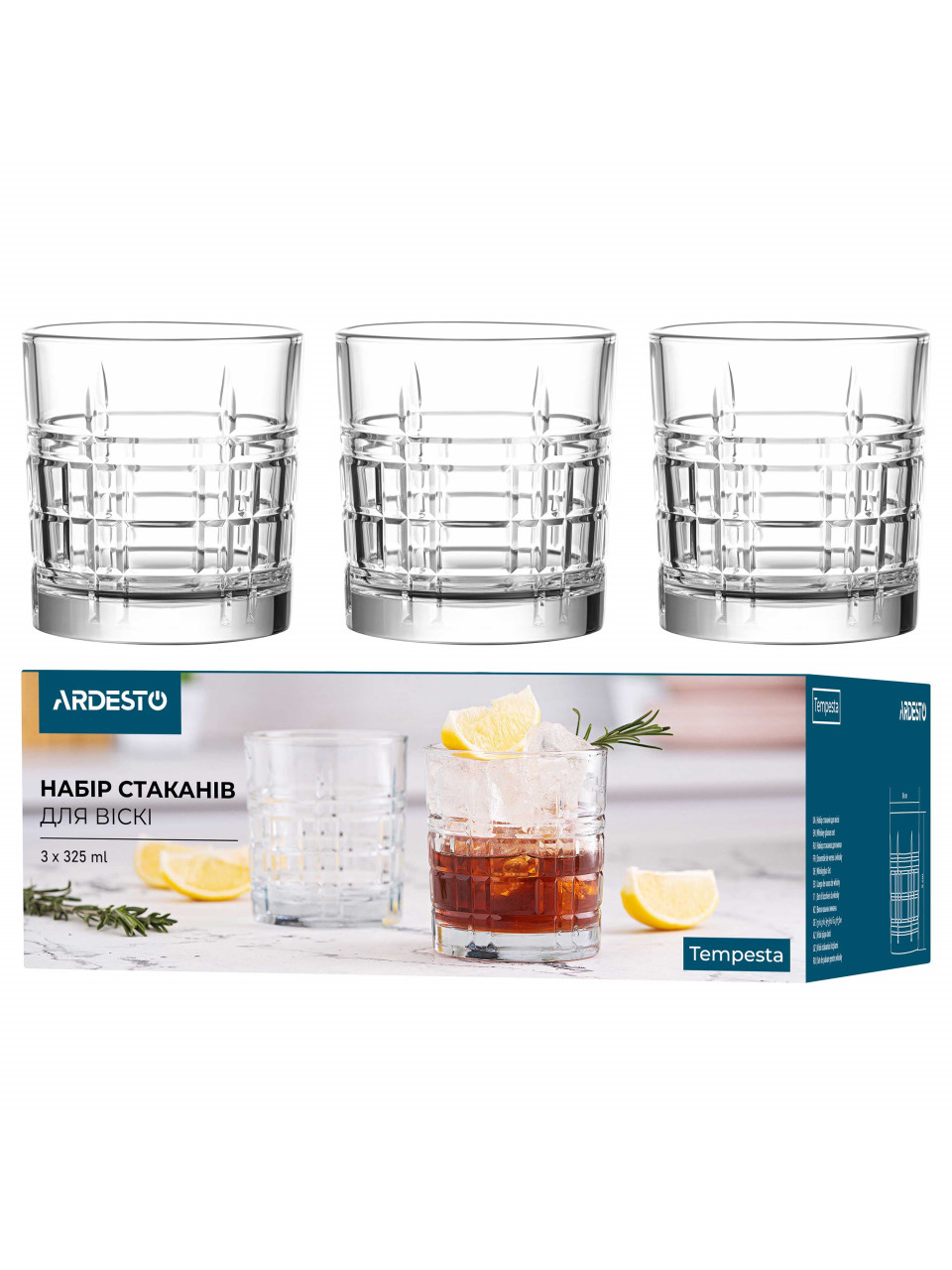 Набір склянок для віскі Ardesto Tempesta 325мл, 3шт, скло, прозорий