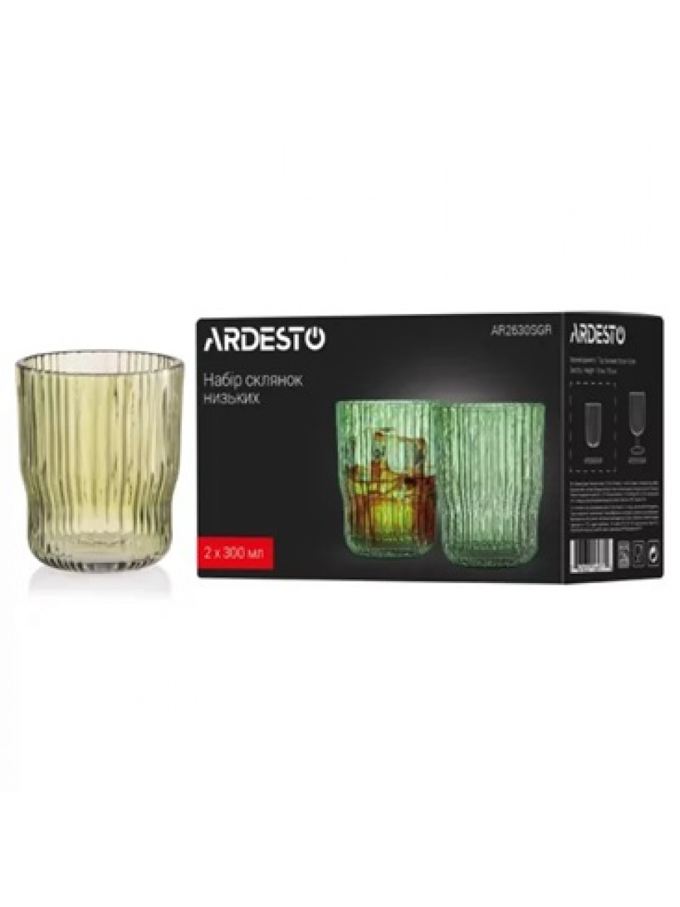 Набір склянок низьких Ardesto 300мл, 2 шт, скло, зелений