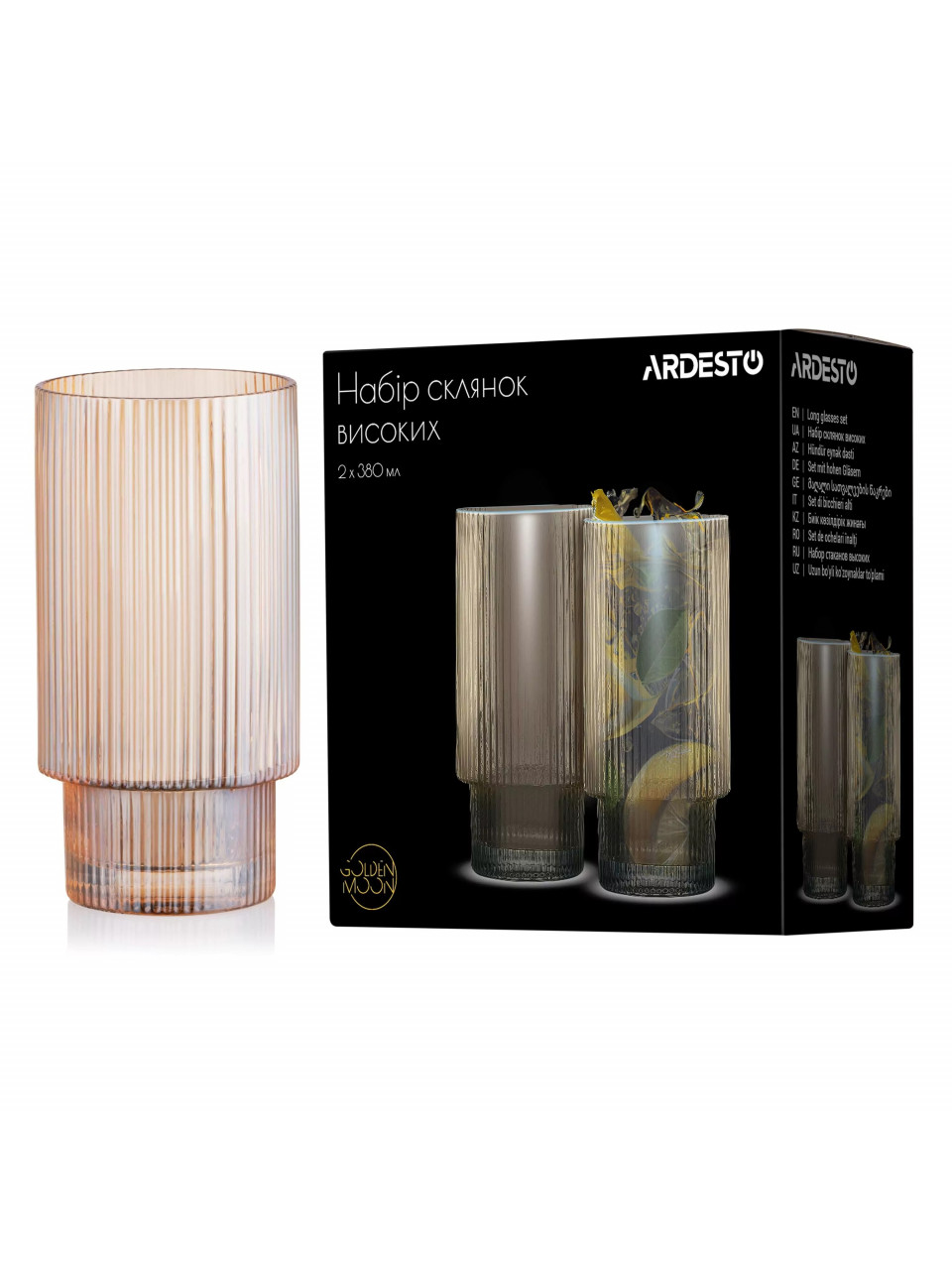 Набір склянок високих Ardesto 380мл, 2 шт, скло, золотистий