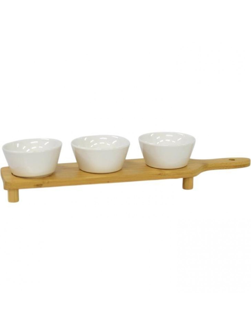 Набір соусників на підставці Ardesto Midori, 3шт., 110мл, порцеляна, бамбук