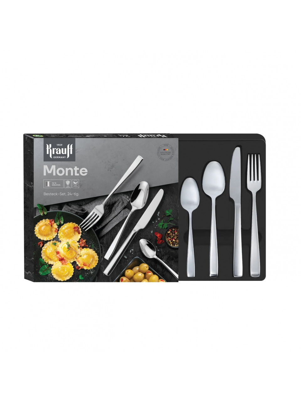 Monte — це набір столових приборів із 24 предметів, створений для тих, хто цінує поєднання елегантності, якості та комфорту. Ідеальний варіант як для повсякденного використання, так і для сервірування святкового столу.