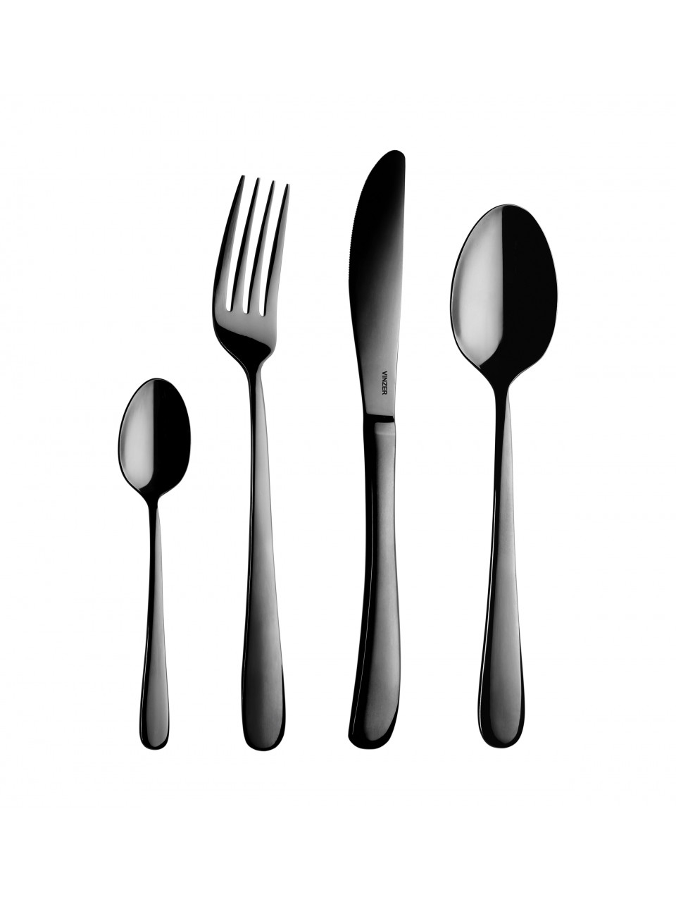 Вишуканий чорний столовий набір стане справжньою окрасою вашого столу! Цей набір не тільки функціональний, а й створює атмосферу стилю та витонченості. Прилади виготовлені з високоякісної нержавіючої сталі FERRINOX 18/10. Цей матеріал стійкий до механічних пошкоджень, корозії, кислот і лугів. Сталь екологічно чиста і не містить шкідливих компонентів. Чорний колір надає набору універсальності – він ідеально впишеться як в класичний, так і в сучасний інтер’єр.