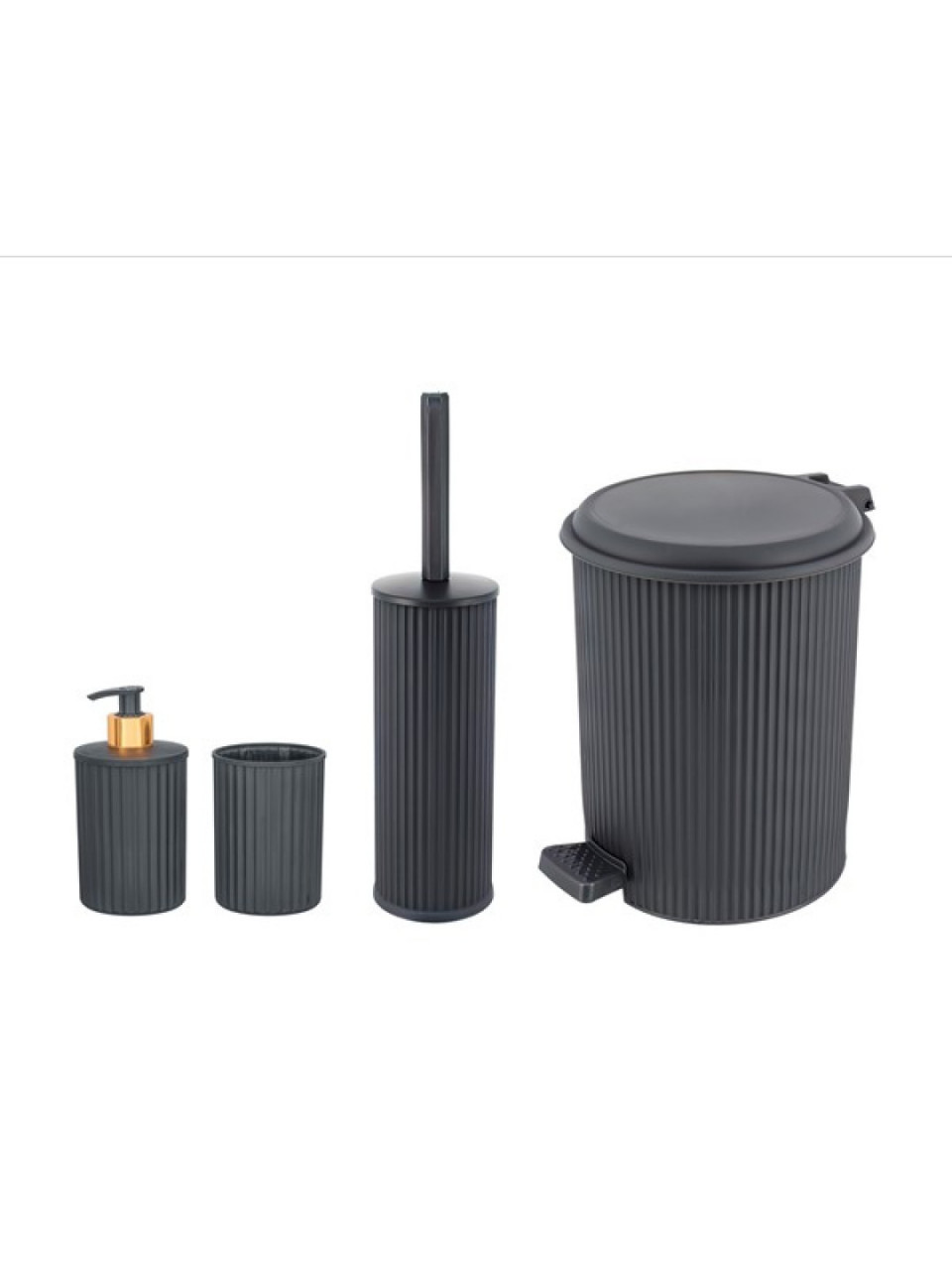NOSTALGIA Набір для ванної 4 в 1 (йорж, відро для сміття 6л, дозатор та стакан для щіток)(Антрацит)