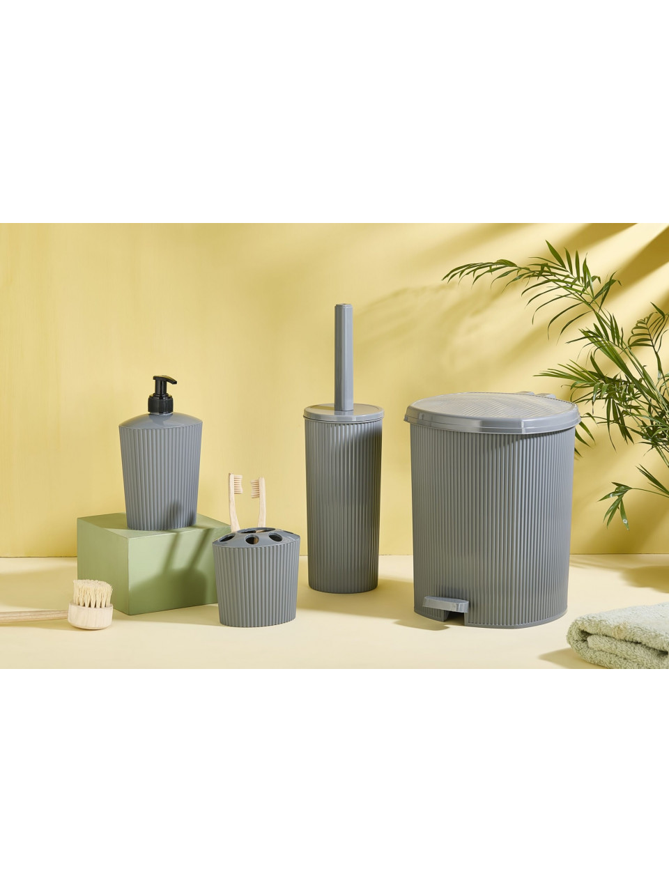 NOSTALGIA Набір для ванної 4 в 1 (йорж, відро для сміття 6л, дозатор та стакан для щіток)(Сірий)