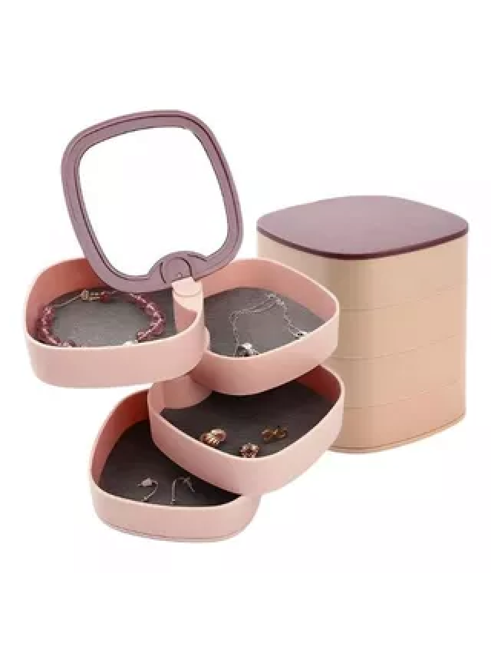 Органайзер для прикрас, 4 комірки, з дзеркалом (рожевий)*12