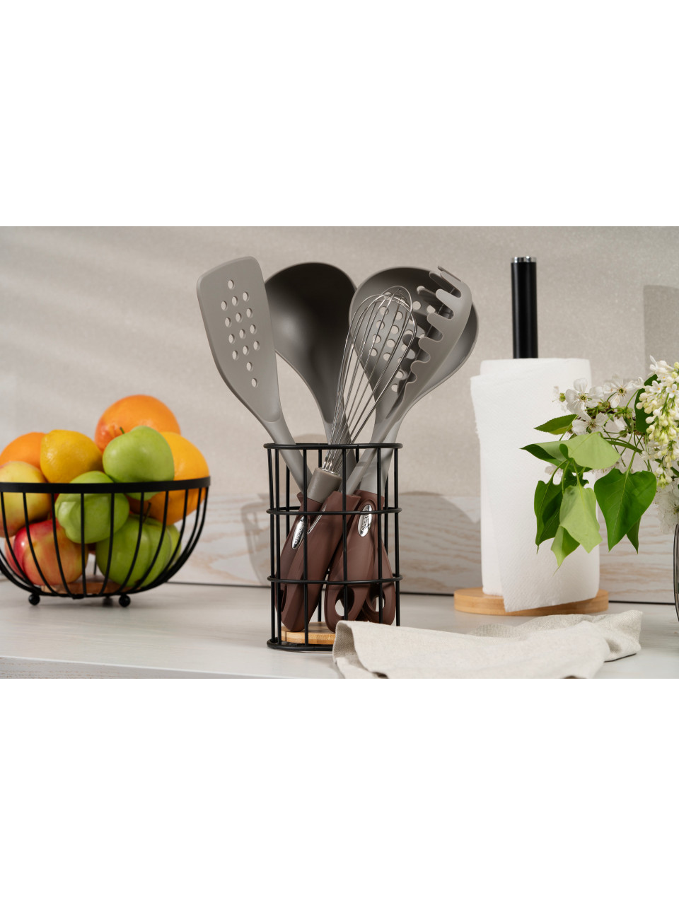 Підставка для столових приборів Ardesto Midori, 11*11*17см, метал, бамбук, чорна