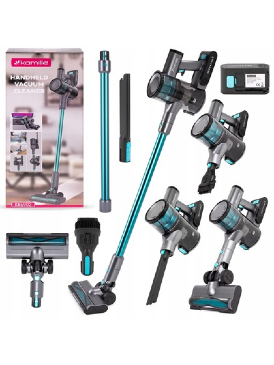 Бездротовий пилосос Kamille KM-6901 універсальний та простий у використанні. Завдяки компактним розмірам, пилосос легко зберігати. Бездротовий пилосос усуває проблему кабелів, які під час прибирання можуть заважати. Його компактні розміри дозволяють легко розмістити його навіть в обмеженому просторі. розпізнає та автоматично регулює передачі, ретельно очищає різні підлоги. Завдяки вбудованим світлодіодам ви помітите бруд навіть за умов поганого освітлення. У пилососі використовується 3-ступінчаста система фільтрації, яка ефективно затримує всі забруднення. Щоб очистити пилосос, помістіть його в кошик і відпустіть замок на резервуарі, щоб відкрити його, звільнити та вилити весь вміст.