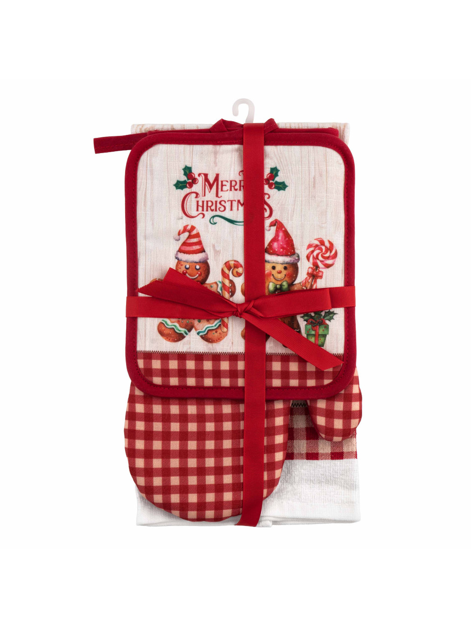 Подарунковий набір для кухні Ardesto Christmas Gingerbread, 3шт, 100% бавовна (рушничок), 100% поліестер (прихватки), червоний