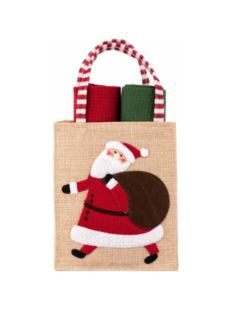 Подарунковий набір рушничків в мішечку Ardesto Christmas Santa 38х63см, 2шт, 100% бавовна, червоний, зелений