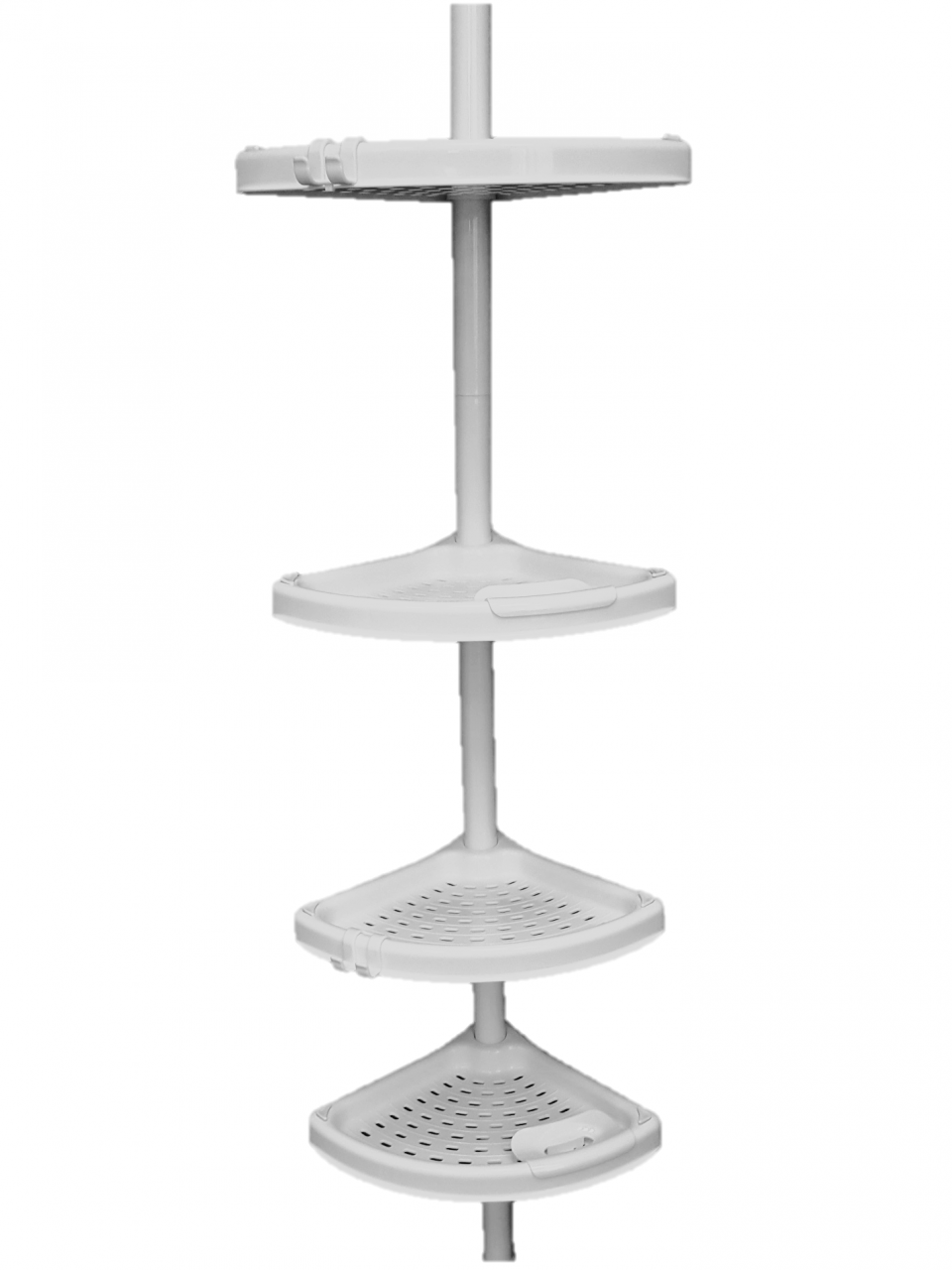 Поличка в ванну кімнату 4-х ярусна кутова Prima Nova телескопічна пластикова трубка 25*25*130 см, білий
