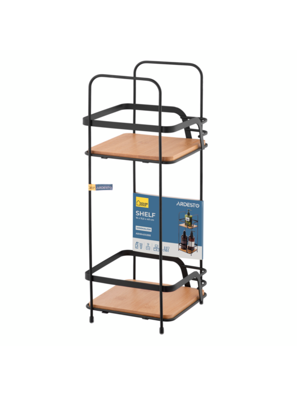 Полиця Ardesto Minimalism 2-ярусна 16х15.5х40см, метал, бамбук, чорний