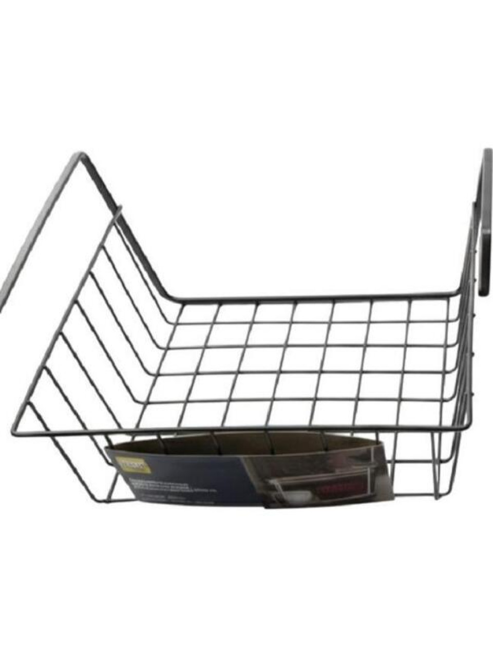 Підвісна полиця ARDESTO виготовлена із міцного металевого дроту з чорним захисним покриттям. Основа виробу виконана у вигляді сітчастої решітки з квадратними ланками, що забезпечує надійну підтримку вмісту та гарну вентиляцію. Передня частина має відкриту форму, що дозволяє легко діставати речі, не знімаючи саму конструкцію з кріплення. Головною особливістю моделі є дві довгі паралельні ручки-кріплення у верхній частині. Вони призначені для насування на стандартні горизонтальні полиці шаф або стелажів. Завдяки такій системі монтаж відбувається миттєво без використання інструментів чи свердління. Виріб розроблений для максимально ефективного використання "мертвої зони" під полицями, створюючи додатковий ярус для зберігання.