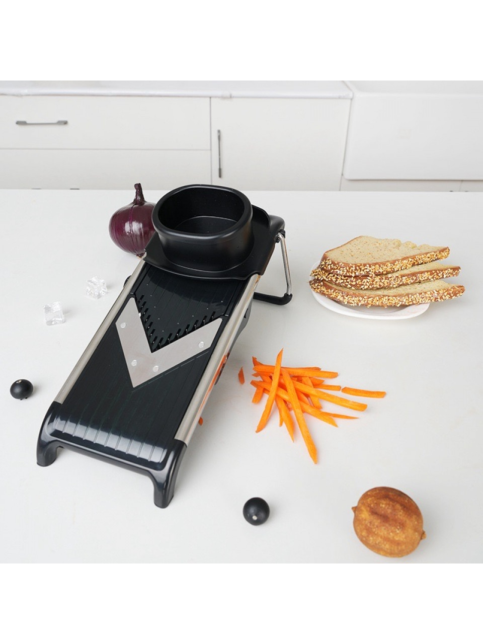 Завдяки чіткій геометрії лез кожен шматочок виходить однаковим, що не лише красиво виглядає, а й забезпечує рівномірне приготування страв.
