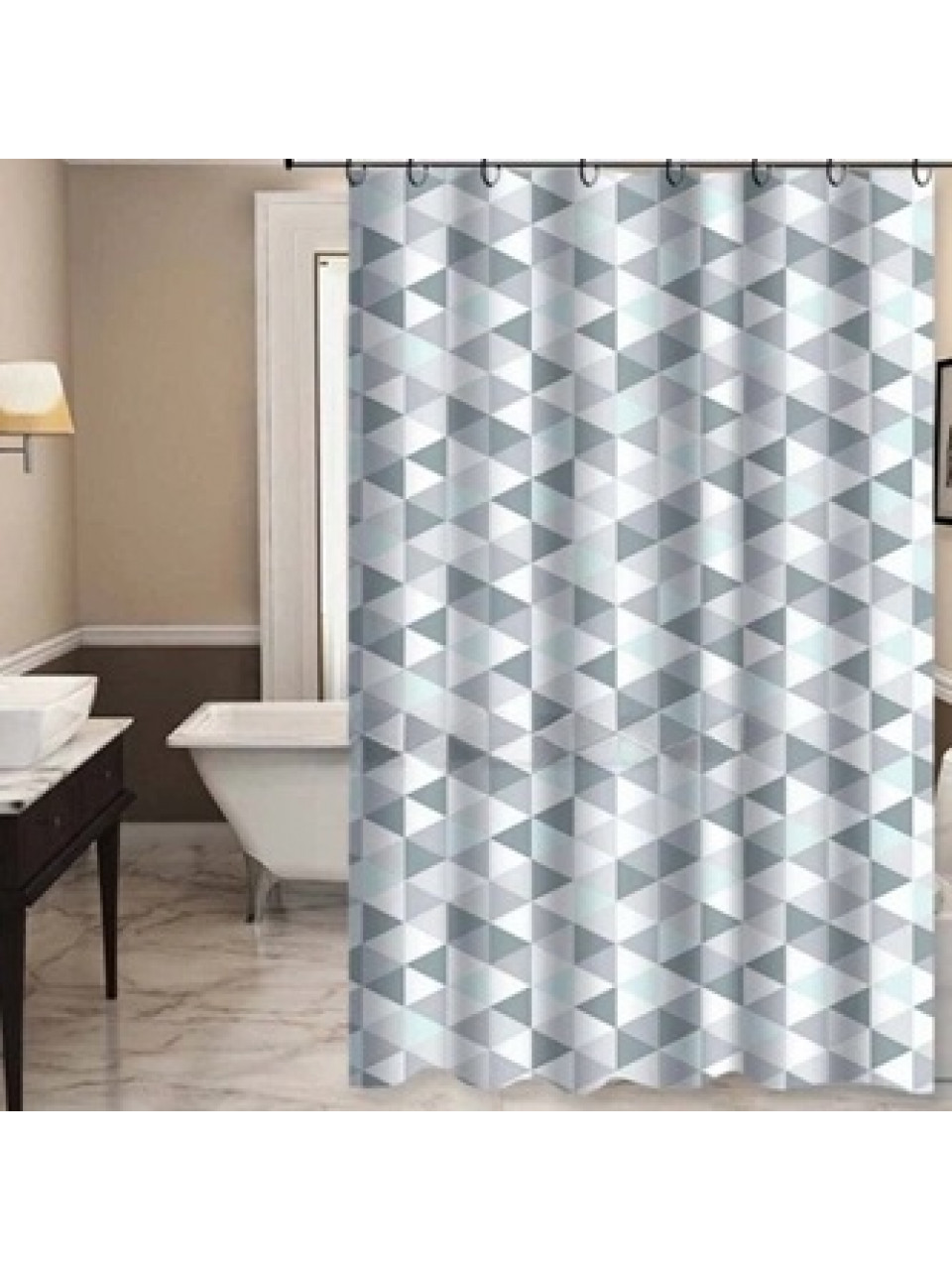Виготовлена з екологічного, водонепроникного та легкого в догляді матеріалу (поліетиленвінілацетату). Матеріал не вбирає воду, що запобігає утворенню цвілі. Шторка легко чиститься, швидко сохне та довго зберігає свій зовнішній вигляд. Матеріал PEVA не містить ПВХ, хлору та фталатів, а головне — не має запаху, що робить шторку безпечною для щоденного використання. Розмір ідеально підходить для стандартних душових кабін і ванн. Комплектується кільцями в кількості 12 штук, що забезпечує надійне кріплення та рівномірний розподіл тканини.