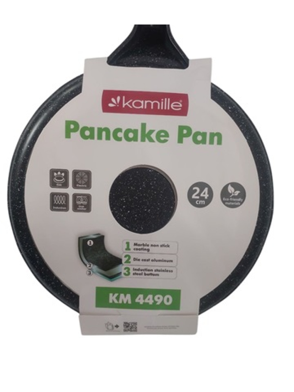 Сковорідка для млинців Kamille Black marble 24 см. з антипригарним покриттям з алюмінію