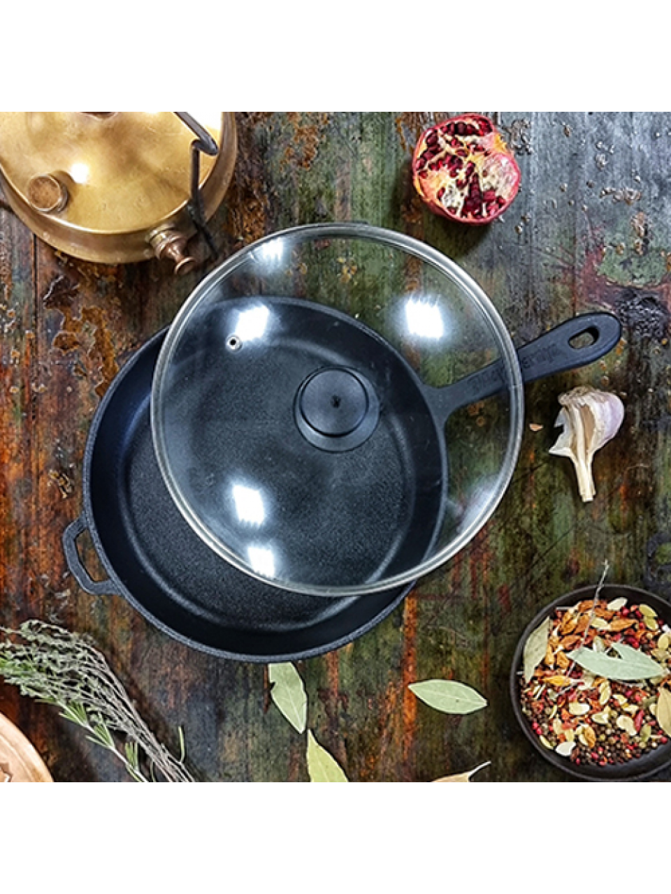 Сковорода чавунна лита Maysternya 22*4 см зі скліною кришкою