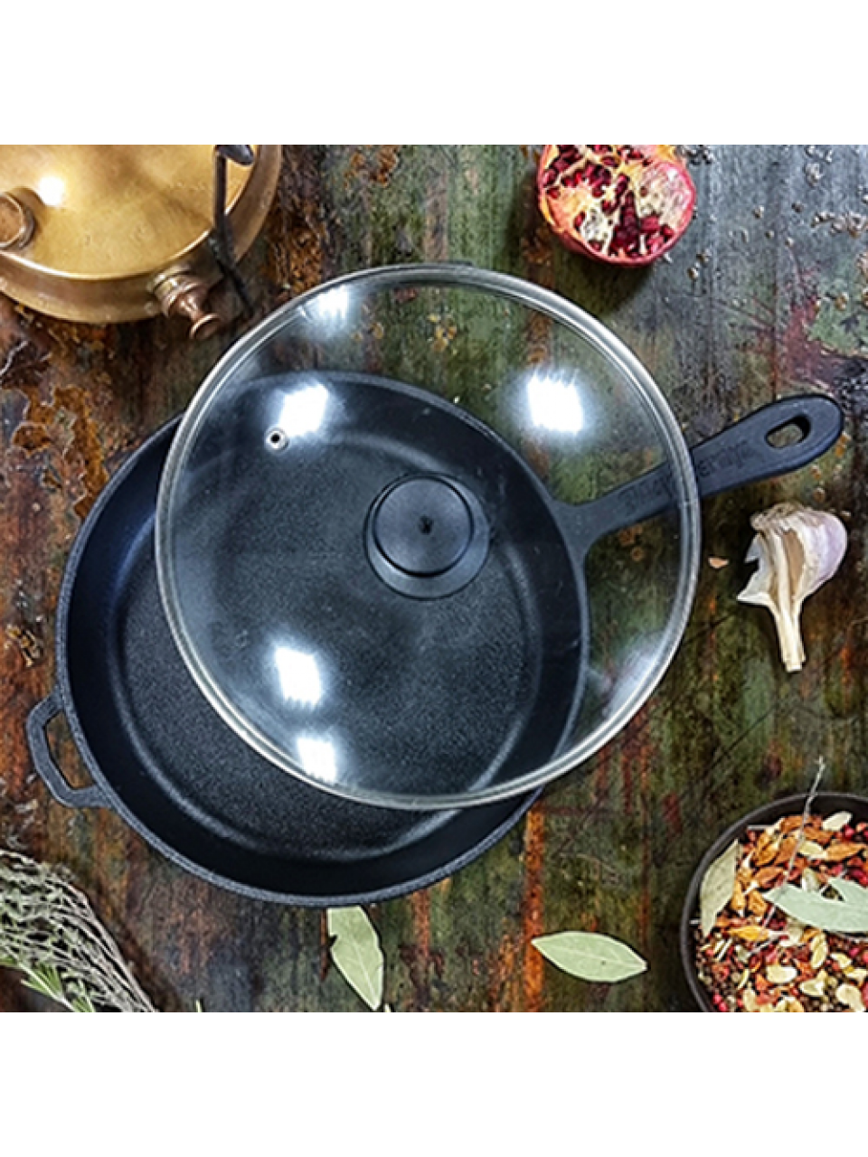 Сковорода чавунна лита S&T 24*4 см зі скляною кришкою