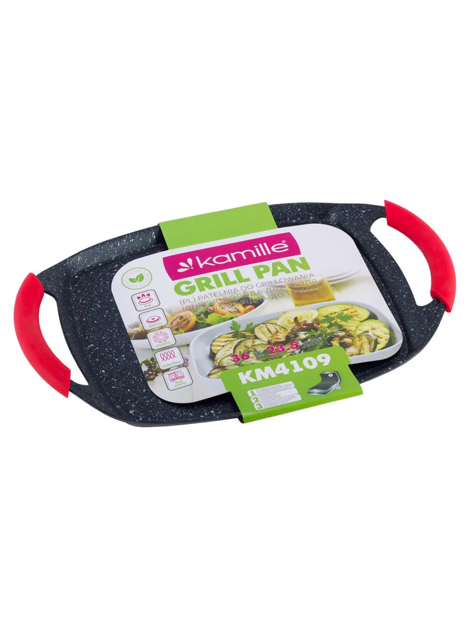 Сковорода-гриль 36*23,5 см з алюмінію з антипригарним покриттям Black marble. Має індукційне дно.