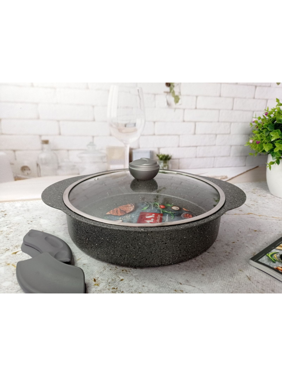 Сотейник алюмінієвий OMS Grey D=32см 4,5л (а/п покр, кр. скло/сірий)