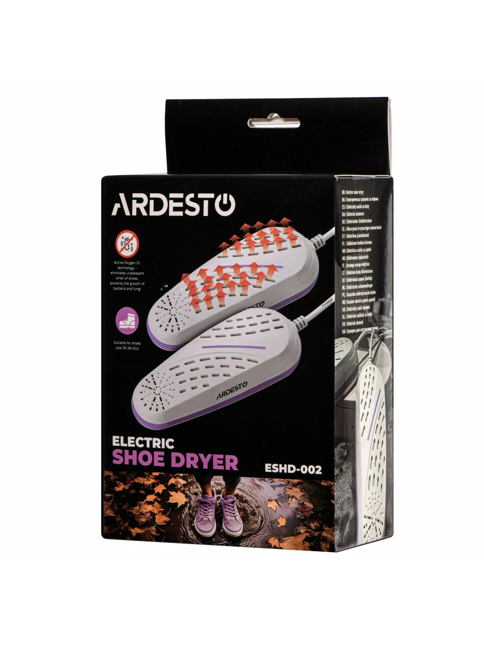 Сушарка для взуття електрична Ardesto, потужність 10Вт, функція озонування, білий+фіолетовий