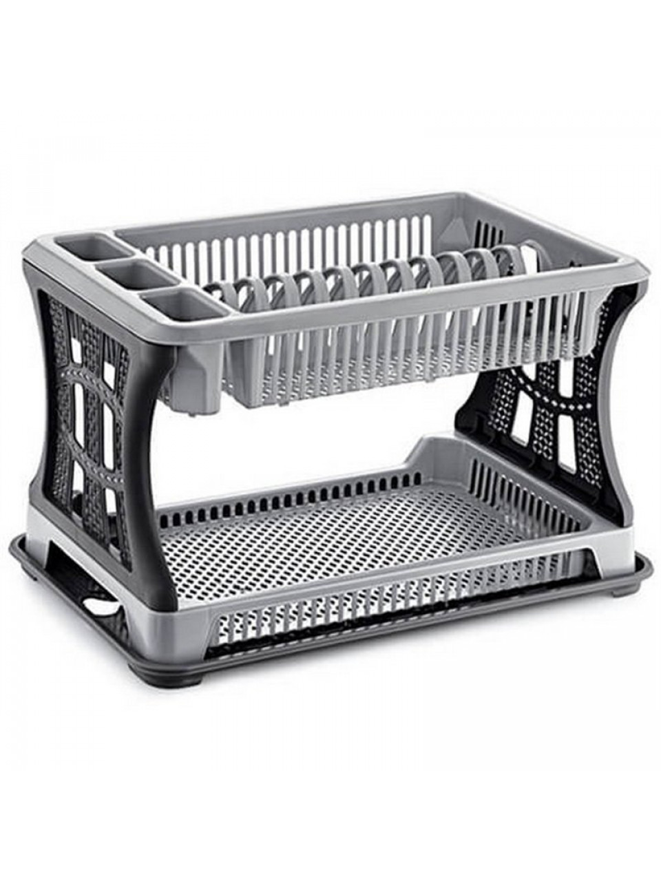 Сушарка для посуду пластмасова, складається з двох ярусів, призначена для сушіння тарілок, чашок, склянок та столових приладів. Двоярусна сушарка має полицю для тарілок та полицю для чашок з піддоном. Сушіння для посуду зручне і функціональне, дозволяє економити простір на кухні, виготовлене з кольорової пластмаси.