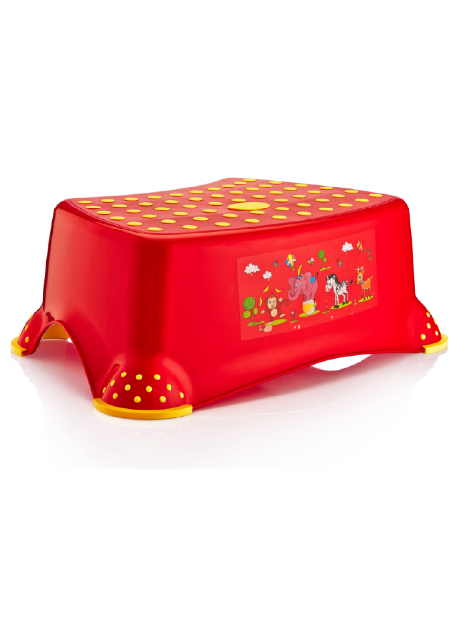 За допомогою табурета-підставки діти можуть самостійно користуватися туалетом і умивальніком. Підставка вироблена зі спеціального матеріалу, поверхня табурета-підставки виключає зісковзування дитини, навіть якщо у неї мокрі ноги. Передбачені знизу гумові елементи забезпечують стійкість на підлозі, коли зверху знаходиться малюк. Завдяки особливому дизайну табурет-підставка стабільна і не може перевернутися.