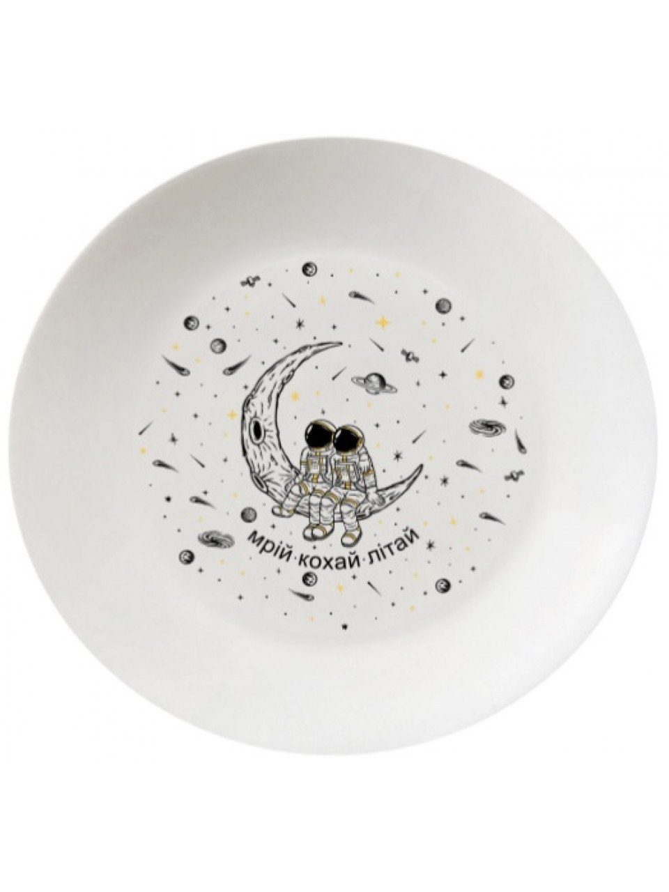 Тарілка Kvarta Космонавти мрій кохай літай 25 см. склокераміка + подарункова коробка