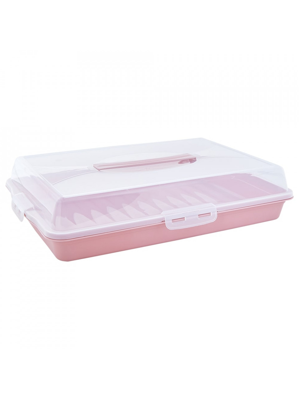 Тортівниця пластикова прямокутна 44*30*9,5 см з кришкою на 4-х защіпках (фрезія/прозора)