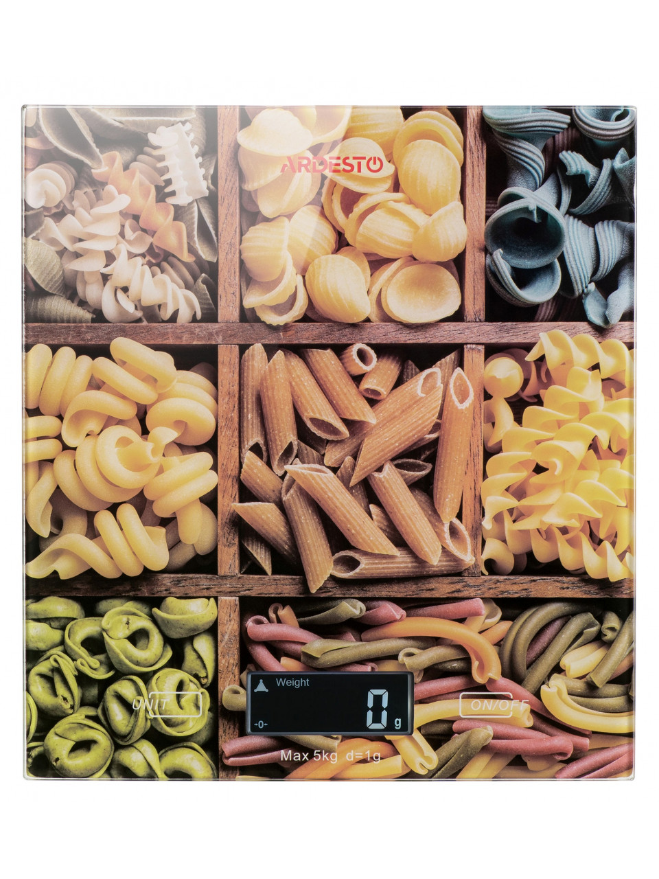 Кухонні ваги з дизайнерським малюнком для вимірювання інгредієнтів та дрібних продуктів. Модель SCK-893PASTA виконана у ексклюзивному італійському дизайні. Малюнок з пастою додасть барв та прикрасить інтер’єр будь-якої кухні.