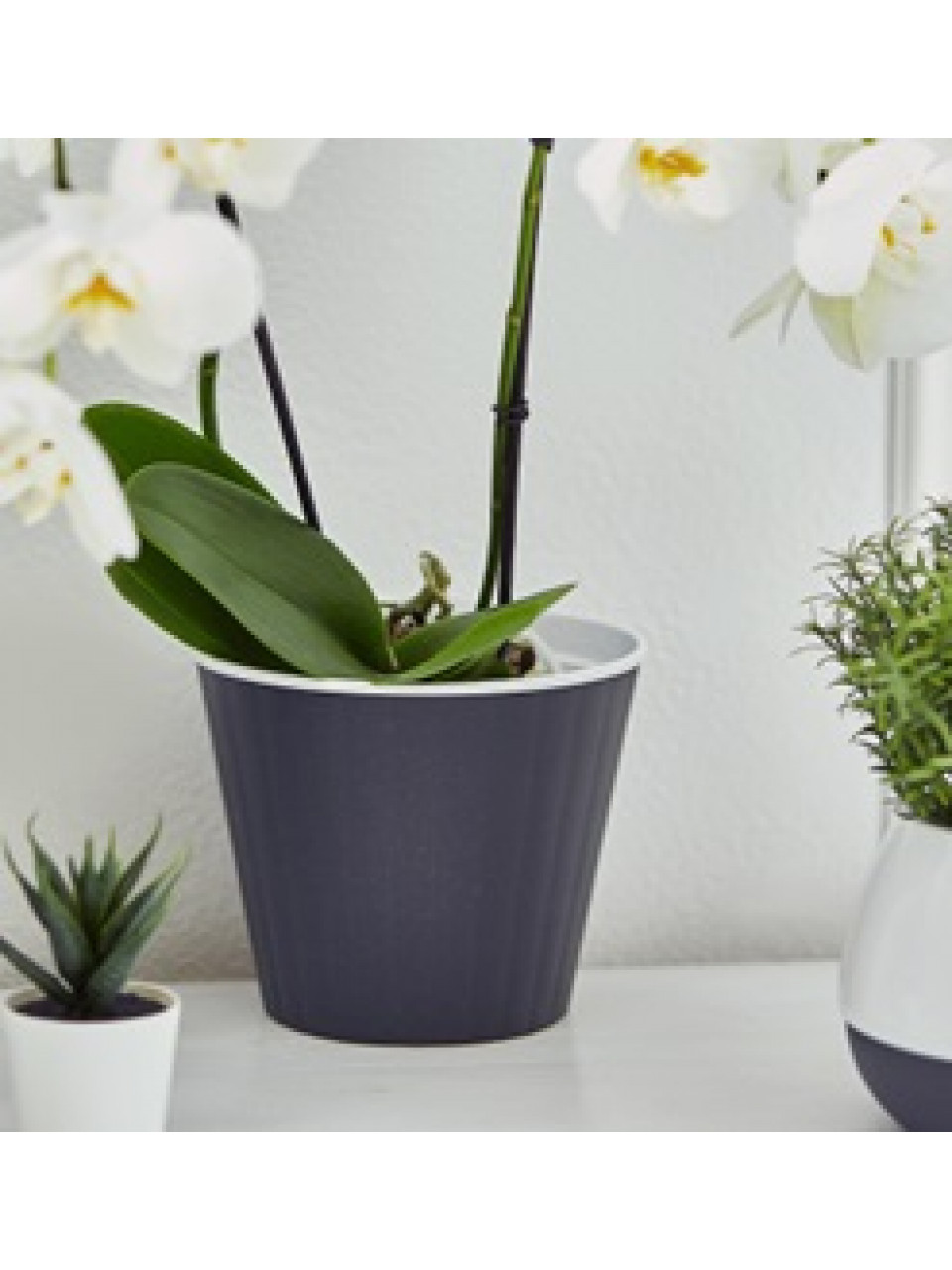Вазон "Ібіс" з подвійним дном 17,9*14,7 см. (граніт-білий)*9