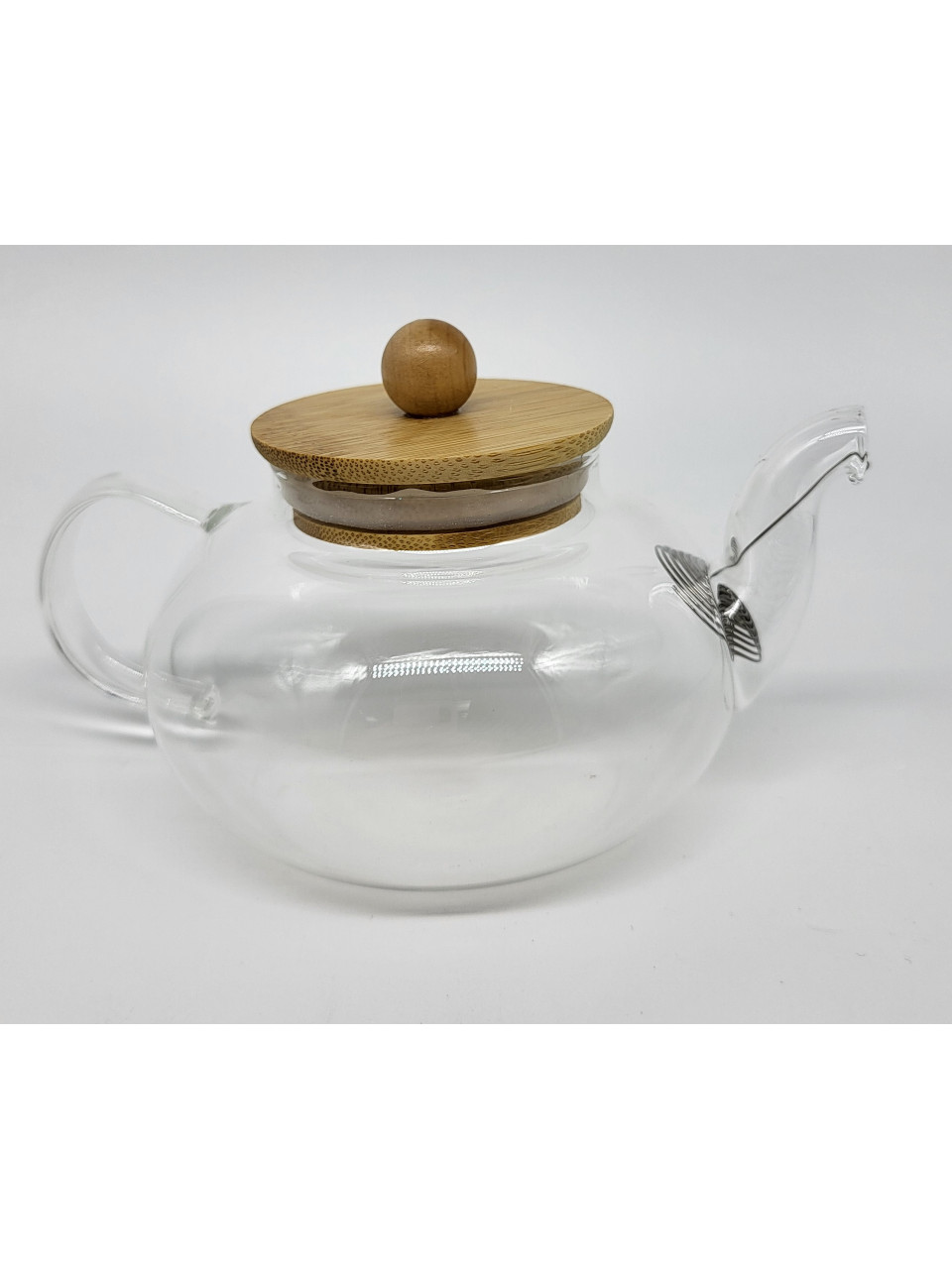 Заварник скляний 600 мл KV з пружиною-ситом та бамбуковою кришкою